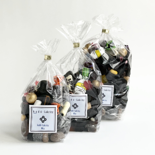 kadó in new splendour. We fill our liquorice in cellulose bags, environmentally friendly and plastic-free! They are made from wood residues. However, the bags are not as barrier-resistant as plastic, moisture can get in and out more easily. So: consume quickly, for example on a cinema night. Or decant into a bonbonniere with a lid.