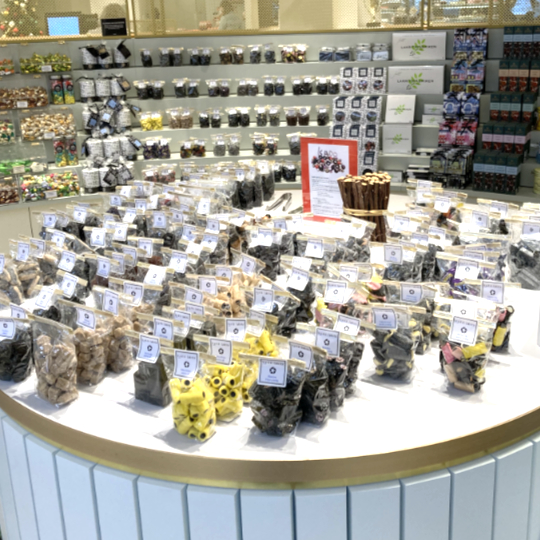 This is how liquorice from kadó is presented at KaDeWe. When it became clear that we would have to give up our shop, the offer came from the house to show a small, fine liquorice selection here. And so it is, dear customers. From now on, you can buy here on the 6th floor or directly online via "click and collect" at kadó. Smak!